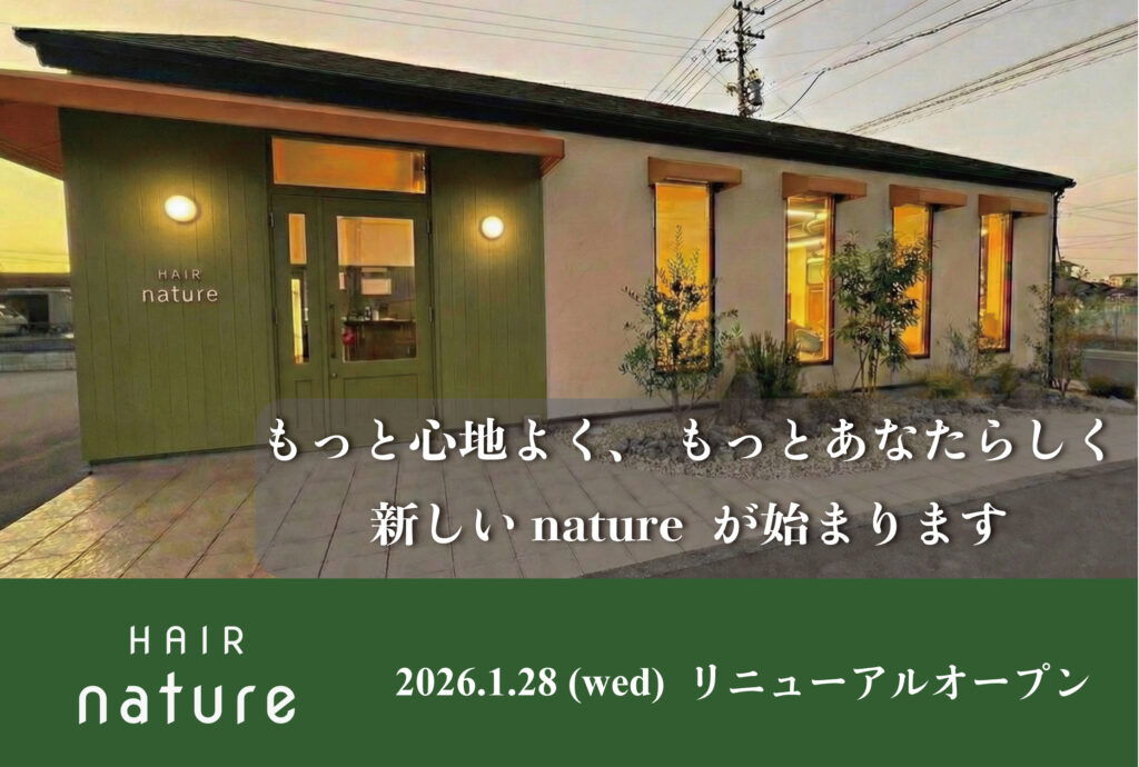 🎁 先着300名様限定プレゼント 期間中にご来店いただいたお客様に、natureオリジナル**「エコバッグ」**を差し上げます! (※なくなり次第終了となりますので、お早めにご予約ください)