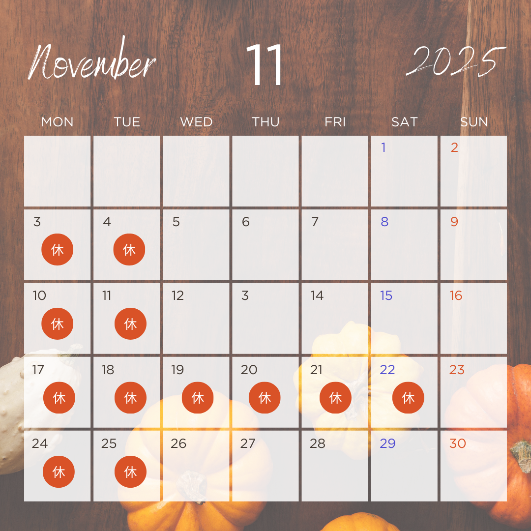 🍂WAVE店 11月の定休日のお知らせ🍂